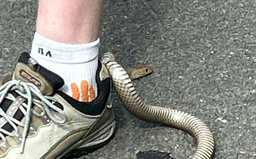 그는 현장에 도착했을 때 뱀이 36도의 더운 날씨 속에서 30분 넘게 뜨거운 아스팔트에 갇혀 있어 열 스트레스를 받고 있었다고 말했다. 열 영향을 받은 상태였기에 신속히 제압할 수 있었고, 신발을 풀자 여성이 발을 빼고 안전한 곳으로 이동할 수 있었다고 설명했다. 이후 구급대원이 뒤꿈치 고리를 잘라 뱀을 풀어줬다.