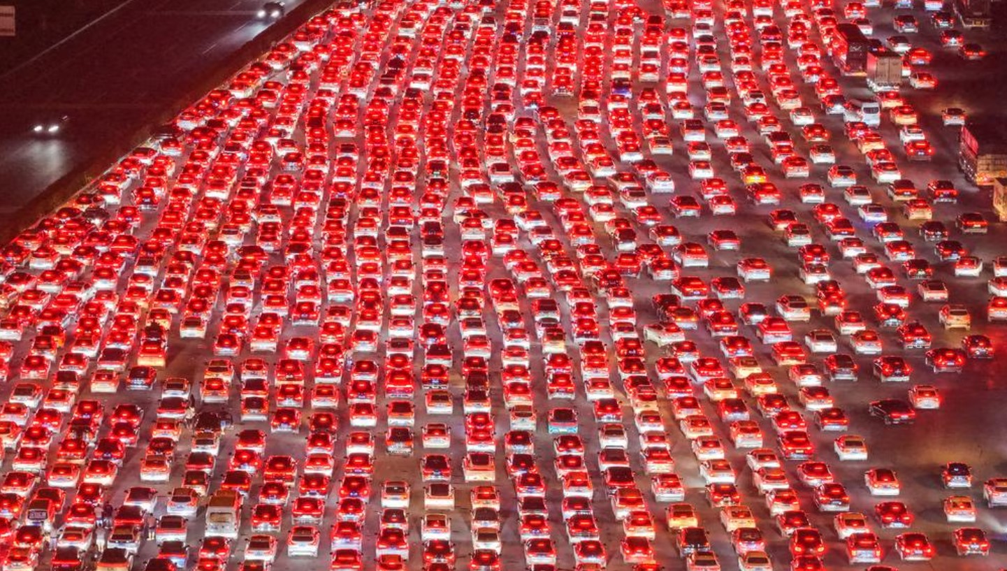 항공 촬영 영상에는 36개 차선을 갖춘 중국 최대 규모의 톨게이트 앞에 수천 대의 차량이 줄지어 서 있는 모습이 포착되었다. 이 톨게이트는 이날 하루에만 120,000대 이상의 차량이 통과할 것으로 예상된 것으로 전해졌다.