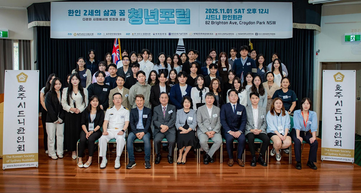시드니한인회가 주최하고 호주 한인 청년협회 (KYAA)가 주관한 ‘2025 시드니 청년 포럼’이 11월 1일 시드니 한인회관에서 열렸다. 이번 행사는 재외동포청, 주시드니 대한민국 총영사관, 호주 한인 건설협회 (KACEA), 세계 한민족 여성 네트워크 (KOWIN)의 후원으로 진행됐으며, 80여 명의 청년들과 한인회 관계자들이 참석했다. 유학생, 졸업생, 취업 준비생 등 다양한 한인 청년들이 진로와 삶에 대한 고민을 공유하고 조언을 얻는 자리로 마련됐다.
