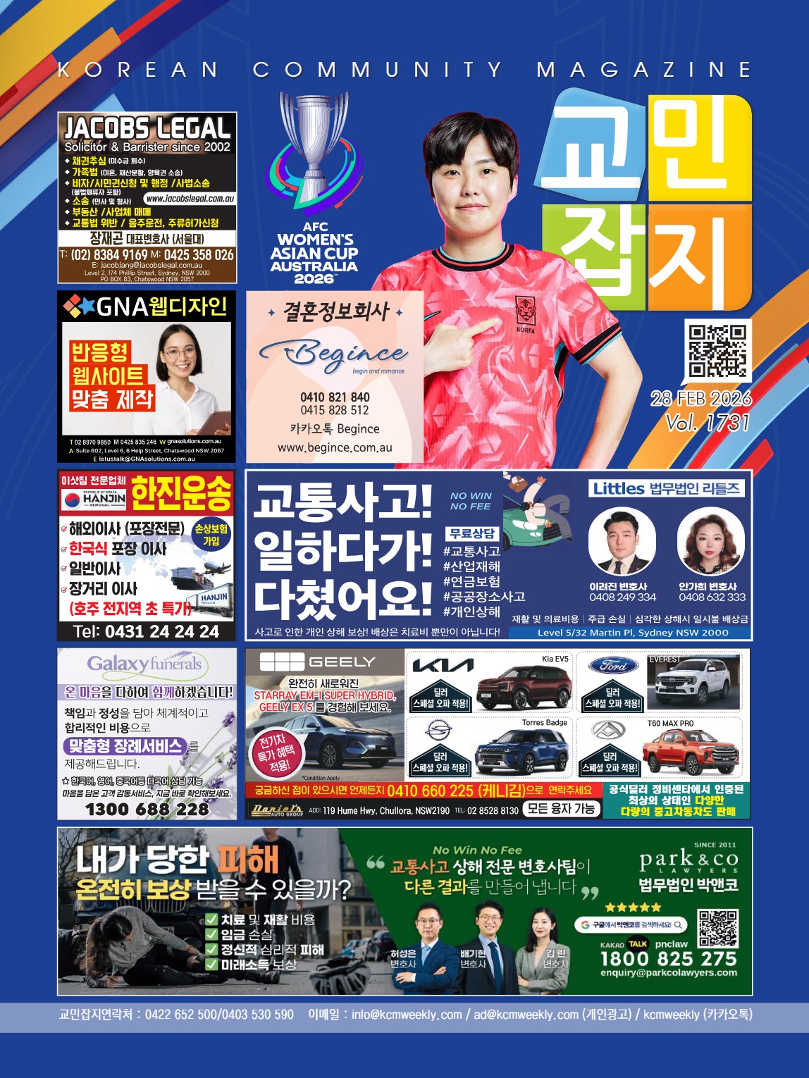 저희 교민잡지는 지난 30년 동안 꾸준하게 여러분 곁을 지켜온 교민정보잡지로 뉴스, 맛집, 여행, 비자, 워킹, 이민, 유학, 부동산 등 호주와 한국관련 정보를 제공합니다. kcmweekly.com은 호주 시드니에 거주하는 교민을 위한 미디어입니다.